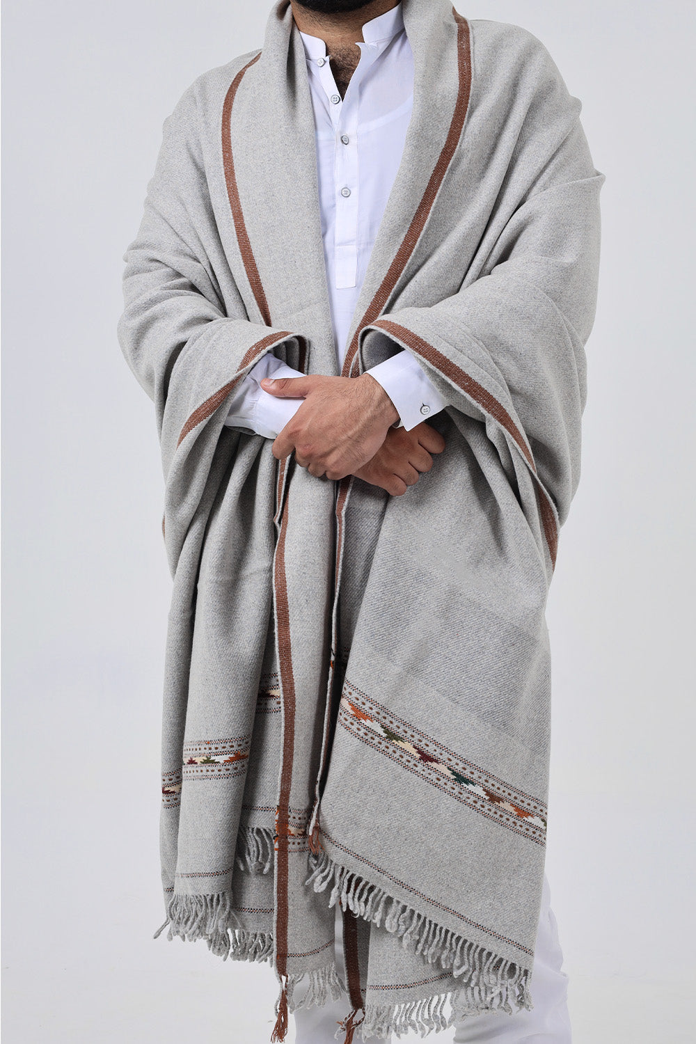 Made from luxurious Swati Lambs Wool at Handloom, this shawl is perfect for men who appreciate high-quality materials and traditional designs. Its soft texture provides warmth and comfort while also adding a touch of elegance to any outfit. Ideal for both formal and casual occasions.